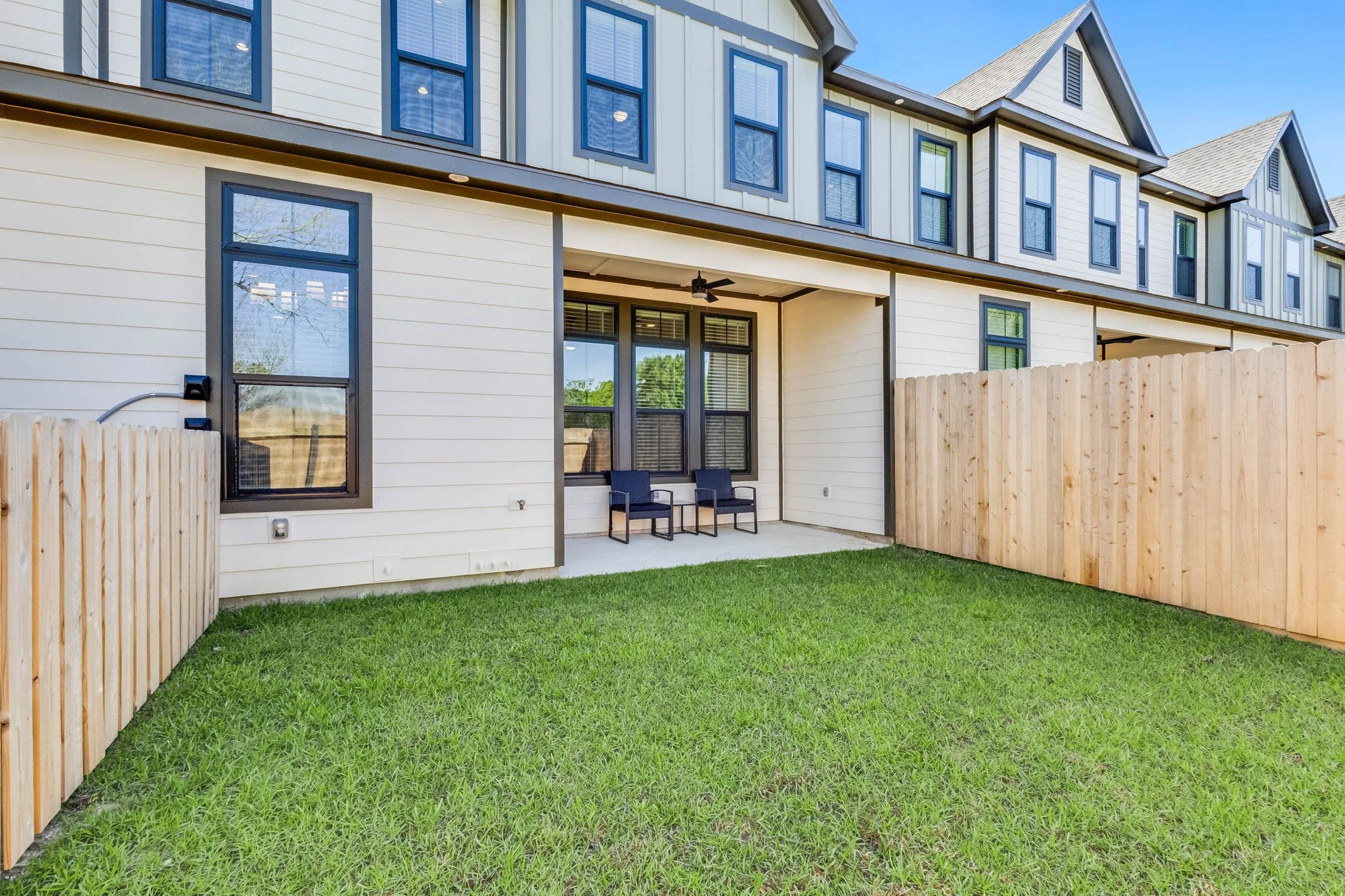 Each unit is equipped with a fenced-in private backyard with a covered patio. Perfect for you and your pets!